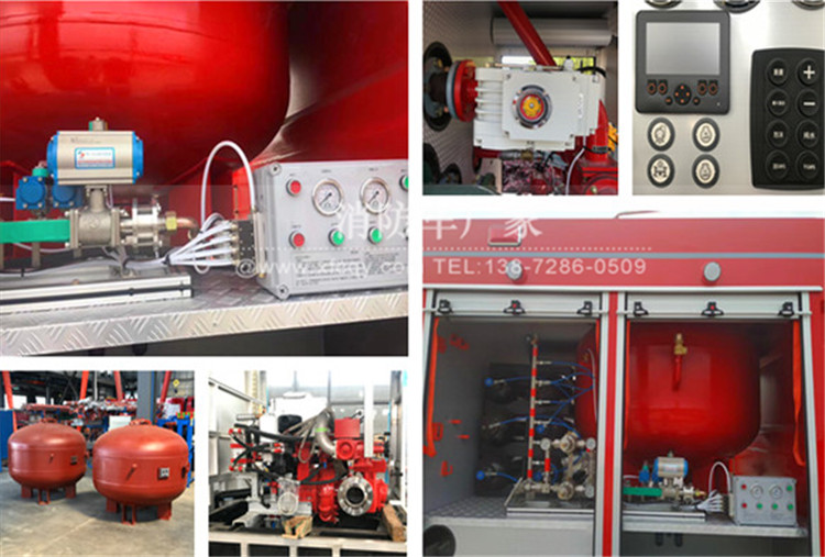 駕駛室頂部前端為長排警燈,車身后配有24V/60W火場照明燈一只,車輛兩側(cè)上方各配有紅藍(lán)相配的爆閃燈,下方安裝安全標(biāo)志燈,乘員室、器材箱、 泵房內(nèi)均裝有照明燈,加裝有100W警報(bào)器,回轉(zhuǎn)警燈開關(guān)、通訊設(shè)備預(yù)備接口。