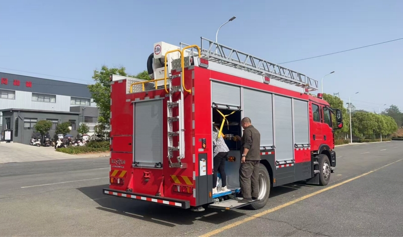 汕德卡15米舉高云梯多功能壓縮空氣泡沫消防車是近年消防救援裝備領域的重要創(chuàng)新,整合了云梯舉高、搶險救援、壓縮空氣泡沫滅火等多項功能,形成高效集約化救援解決方案。以下為該產(chǎn)品的核心亮點與技術細節(jié):
