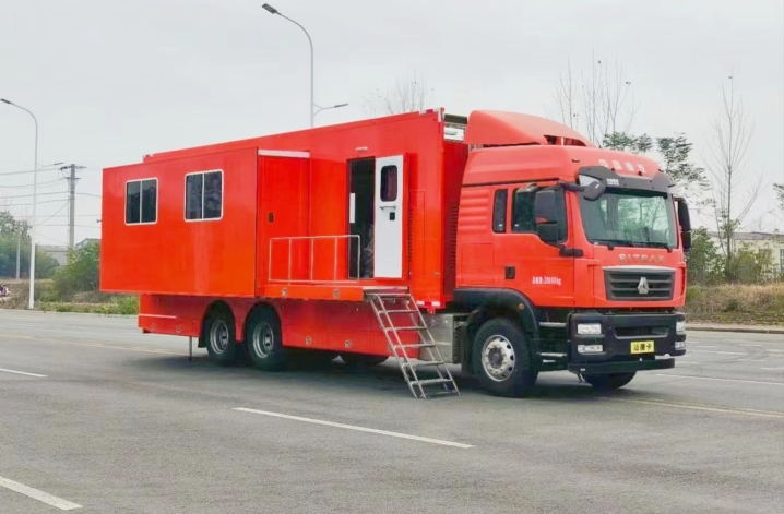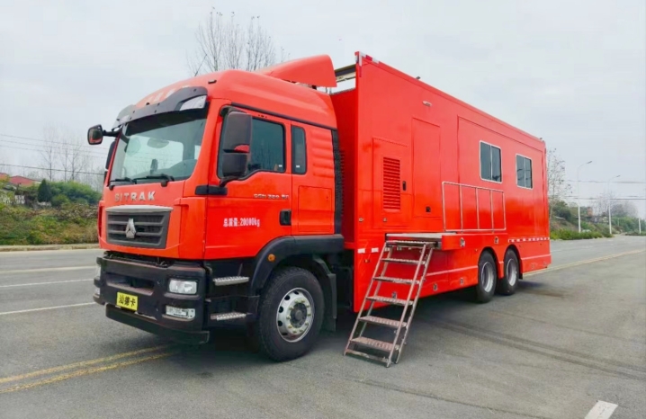 我公司生產(chǎn)的通信指揮車基于汕德卡ZZ5266XXYN504GF1K型廂式運(yùn)輸底盤改裝,該底盤變速箱為手動(dòng)變速箱,最高車速89km/h,發(fā)動(dòng)機(jī)型號(hào)為MC07H.35-60,發(fā)動(dòng)機(jī)排量:7360ml,排放國(guó)Ⅵ標(biāo)準(zhǔn)。消防通信指揮車以汕德卡ZZ5266XXYN504GF1K型廂式運(yùn)輸底盤作為改裝平臺(tái),保證工作人員擁有寬敞舒適的工作環(huán)境,并且為系統(tǒng)的運(yùn)行和維護(hù)提供符合技術(shù)要求的環(huán)境條件。在保持整車優(yōu)良性能的前提下對(duì)車輛進(jìn)行改裝而成,實(shí)現(xiàn)符合用戶使用要求的工作環(huán)境、使用功能而量身定制的特種專用車輛。消防通信指揮車具備通信組網(wǎng)功能和指揮通信與情報(bào)信息采集功能。通過高清晰、低照度車載云臺(tái)攝像機(jī),可實(shí)現(xiàn)全天候、多方位、大范圍的現(xiàn)場(chǎng)監(jiān)控功能。通過車載硬盤錄像機(jī),可以對(duì)現(xiàn)場(chǎng)的情況進(jìn)行適時(shí)錄像、錄音記錄,以便日后進(jìn)行調(diào)查,并可通過USB接口及數(shù)據(jù)端口與其他存儲(chǔ)設(shè)備相連接,進(jìn)行現(xiàn)場(chǎng)刻錄,便于錄像資料的及時(shí)、有效保存。車載液晶電視可集中顯示系統(tǒng)采集到的信息,便于領(lǐng)導(dǎo)實(shí)時(shí)掌握事發(fā)現(xiàn)場(chǎng)的各種情況,可以及時(shí)指揮調(diào)度,正確決策。
