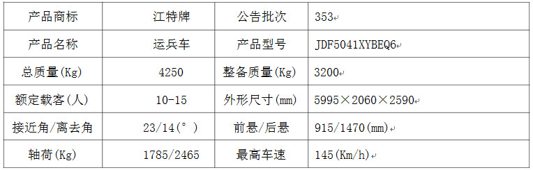 整車(chē)型號(hào):江特牌 JDF5041XYBEQ6 型運(yùn)兵車(chē)
